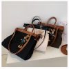/ Luxury Oversize Shopper Totes Bags Women Brown Designer Brand Handbags Quality Canvas/PU Shoulder Bags With Cartoon Pendant