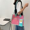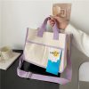 Young Street Canvas Shopper Tote Large Shopping Handbags Orange/Pink Panelled Letter Student Crossbody/Shoulder Bags For Women